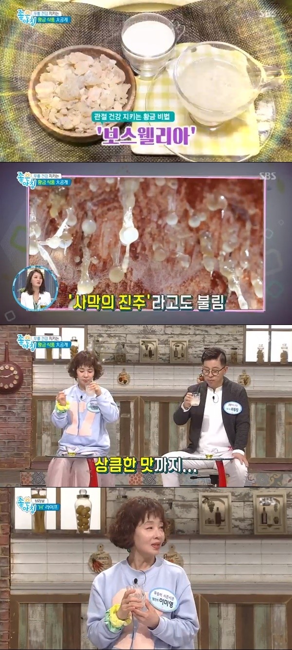 이날 이미영은 “저도 무릎이 좋지 않아서 좋다는 건 이것저것 많이 찾아먹는 편인데 보스웰리아는 처음 듣는다.”고 질문했다.