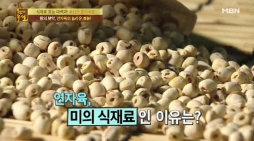 최근 방송된 MBN 천기누설에서 소개된 연자육은 연꽃의 씨앗으로 껍질을 제거하면 땅콩과 비슷한 모양을 하고 있다.