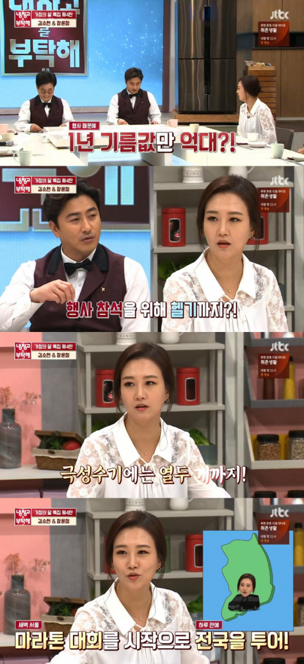 이날 장윤정은 “1년 기름값이 억대라고 기사가 났을 거다. 거리로 봤을 때는 그 정도 될 거다”라며 “헬기도 많이 탔다. 차로 이동한 시간이 안 돼 스케줄을 거절하면 헬기를 띄우더라”라고 말해 모두를 놀라게 했다.