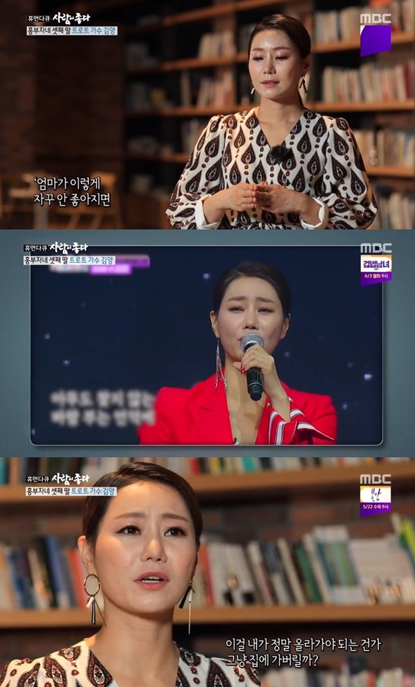 최근 방송된 MBC '휴먼다큐-사람이 좋다'에서는 트로트 가수 김양이 출연해 이목을 모았다.