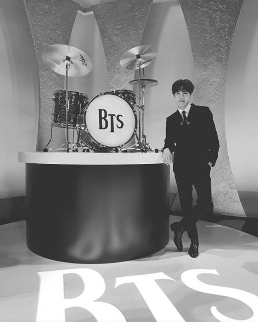 공개된 제이홉은 단정한 정장을 입고 'BTS'라고 써 있는 드럼 옆에서 포즈를 취하고 있다. 나날이 높아지는 위상과 더불어 훈훈함을 더하는 비주얼이 감탄을 자아낸다.