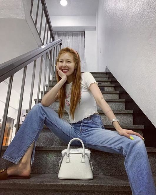 공개된 사진 속 현아는 흰 티에 청바지를 입고 수수한 모습으로 환하게 웃고 있다.