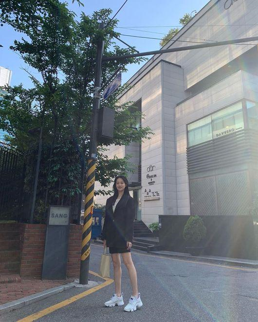 공개된 사진 속 오연서는 길거리에서 포즈를 취하고 있다. 재킷과 미니스커트를 입은 오연서는 수수하지만 세련된 분위기를 자아낸다.