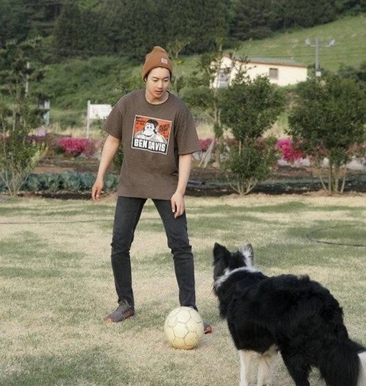 공개된 사진 속 김현중은 편안한 차림으로 그의 반려견 두 마리와 잔디밭에서 공놀이를 하고 있다. 특히 진지한 표정으로 공놀이에 열중하는 모습이 눈길을 끈다.