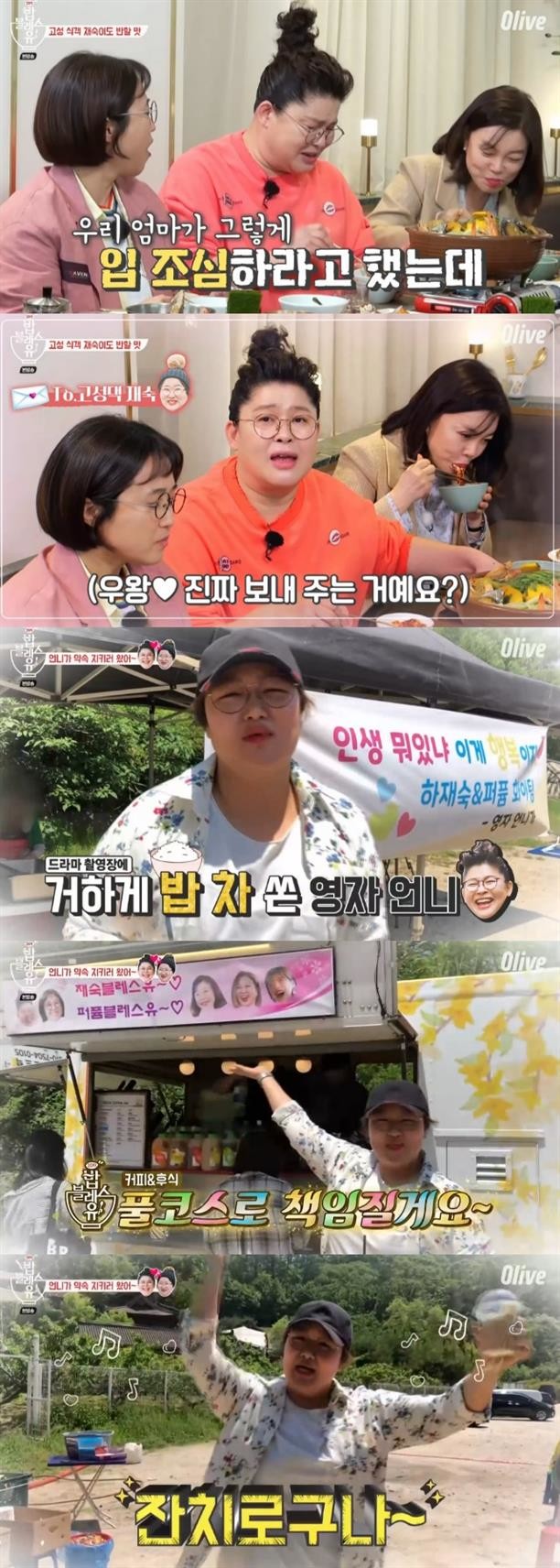 ‘밥블레스유’ 멤버들이 하재숙의 촬영장에 커피차와 간식차를 보내며 약속을 지킨 사연이 조명되고 있다.