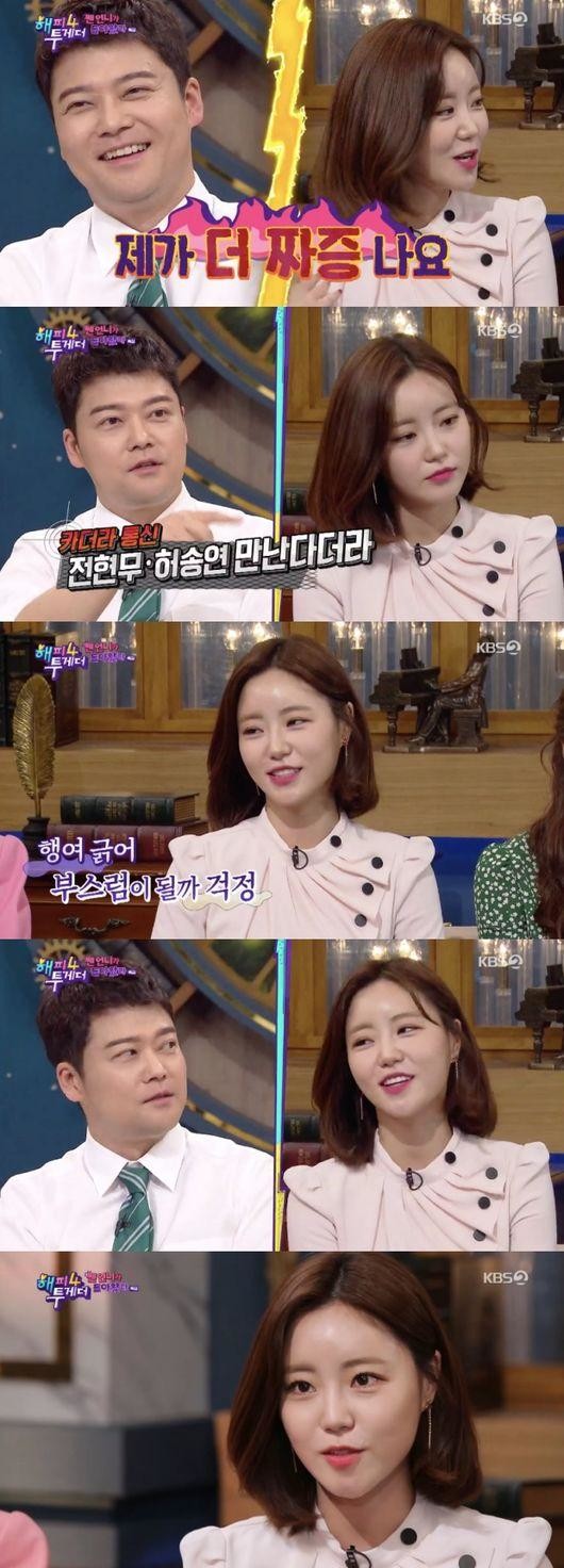 23일 방송된 KBS2 예능 ‘해피투게더4’(이하 ‘해투4’)는 ‘센 언니가 돌아왔다’ 특집으로 꾸며져 정영주, 김정화, 이주빈, 허송연, AOA 혜정이 출연해 속 통쾌한 웃음을 선사했다. 그런 가운데 허송연이 전현무와의 열애설을 언급해 관심이 쏠렸다.