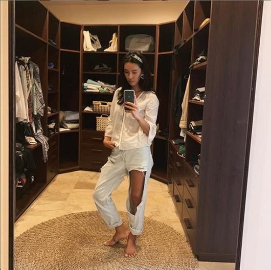 공개된 사진 속 가희는 드레스룸에서 거울에 비친 자신의 모습을 카메라에 담고 있다. 가희는 한쪽 다리가 훤히 보이는 찢어진 청바지를 입은 채다. 여전히 남다른 핏을 자랑해 눈길을 끈다.