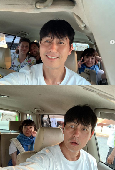 사진 속에서 정우성은 차 안에서 멍한 표정을 짓고 있으며 또 다른 사진에서는 카메라를 응시하며 환한 미소를 지었다.