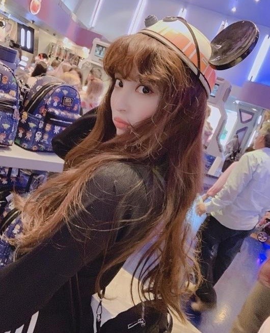공개된 사진 속에는 머리 위에 미키마우스 모양의 모자를 쓰고 카메라를 뒤돌아 보고 있는 정혜성의 모습이 담겨 있다. 마치 인형같은 미모가 비현실적이다.