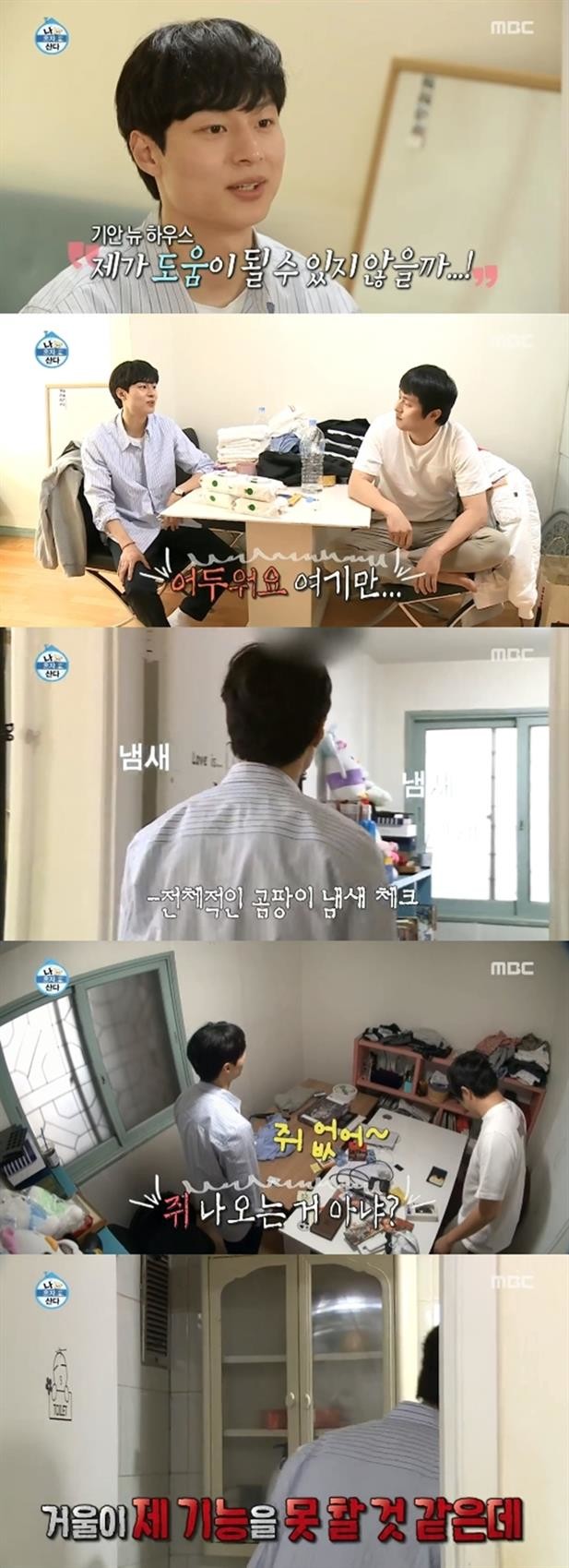 이어 집을 둘러보던 김충재는 "동네 외관은 괜찮은데 형 집만 어두운 것 같다"며 "곰팡이 냄새가 많이 난다"고 말했다. 또 균열이 간 벽을 보고 "쥐가 나오는거 아니냐"며 경악했고, 화장실을 보고 "거울이 제 기능을 못하는 것 같다"며 당황해했다.
