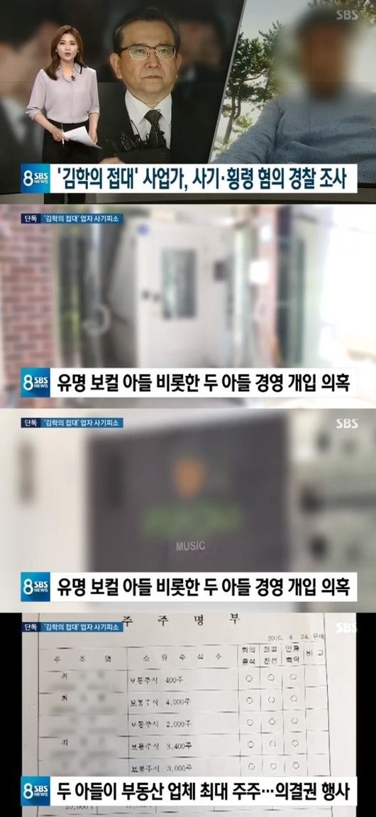 24일 방송된 SBS '8뉴스'에서는 김학의 전 법무부 차관에게 접대를 한 혐의를 받고 있는 사업가 최 모 씨 가사기와 횡령 혐의로 경찰 조사를 받았다고 보도했다.