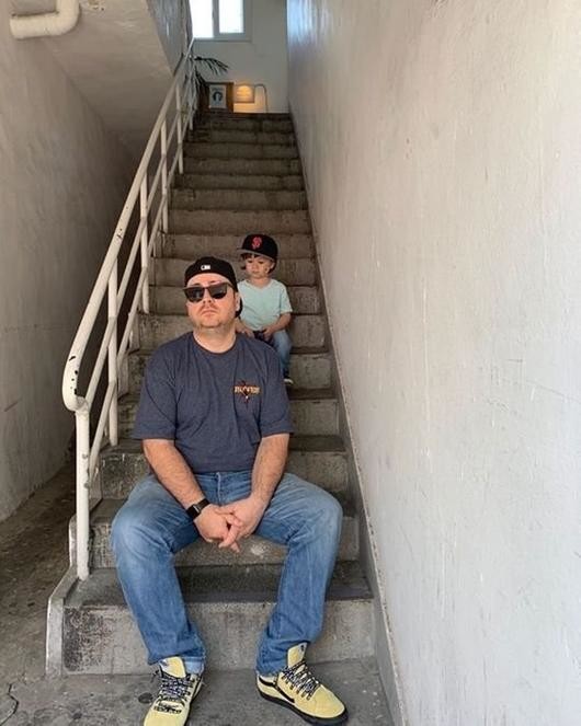 공개된 사진 속 샘 해밍턴은 윌리엄과 함께 계단에 앉아있다.
