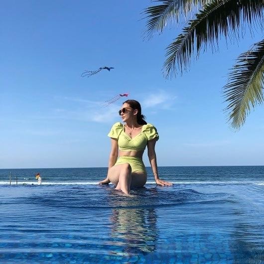 공개된 사진 속 아이비는 그림 같은 배경의 휴양지에서 휴식을 만끽 중인 모습이다. 라임색 귀여운 디자인의 비키니를 입고 굴욕 없는 미모와 몸매를 자랑했다.
