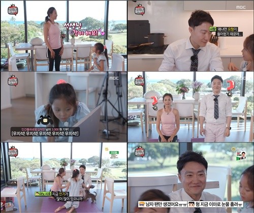 차마 사랑이의 뜻을 거절하지 못한 우지석은 끌려나와 또 요가를 했다. 야노시호는 여자친구가 생겼냐고 물었고 여전히 없다는 말에 “지금 인기가 많으니까 생길 거에요”라고 응원해 웃음을 자아냈다.