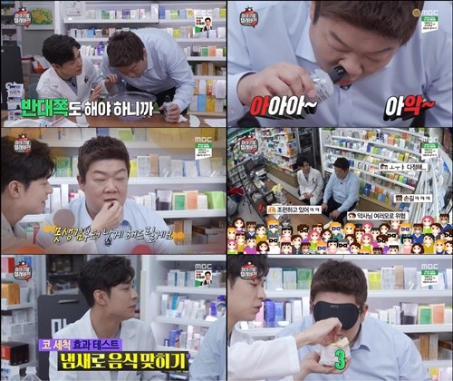 이날 방송에는 인기 유튜버 약쿠르트가 출연해 눈길을 끌었다. 비염을 앓고 있는 유민상에게 약쿠르트는 식염수로 막힌 코를 뚫어주는 법에 대해 설명했다.