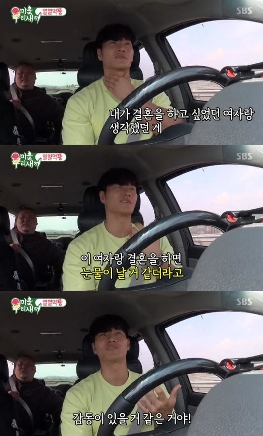 특히 김종국은 "결혼을 하고 싶었던 여자랑 결혼을 생각했던 게 이 여자와 결혼을 하면 눈물이 날 거 같더라. 그 이후에는 누구와 상상을 해도 과연 결혼할 때 그런 감동이 올까 싶었다. 그 이후에는 그런 생각 드는 사람이 없더라"라며 고백했다.