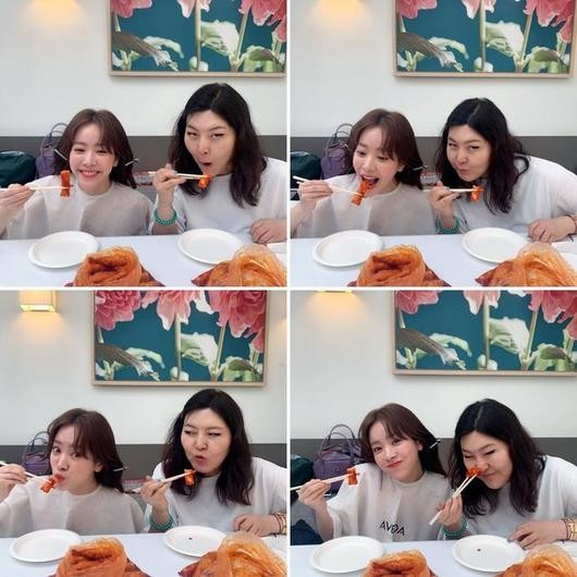 두 사람은 떡볶이를 먹으면서 다채로운 표정을 짓고 있다. 두 사람의 절친 케미와 사랑스러운 매력이 눈길을 끈다.
