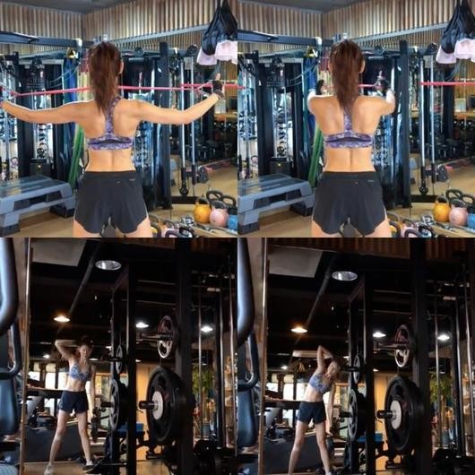 한혜진은 강도 높은 트레이닝에도 쉬지 않고, 기구를 이용해 운동 중이다. 이때 한혜진의 탄탄하게 자리잡은 등 근육과 복근이 시선을 강탈한다.