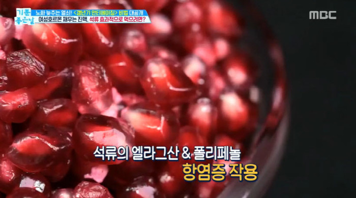 석류는 에스트로겐과 유사한 물질 '엘라그산'과 몸 속 노화를 막아주는 역할을 하는 '폴리페놀' 성분이 풍부해 여성갱년기에 좋은 음식으로 꼽힌다.