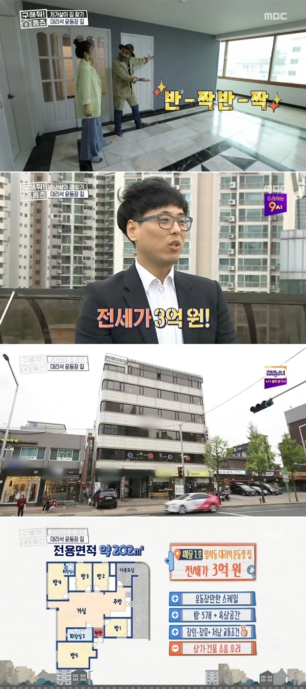 최근 방송된 MBC '구해줘! 홈즈'에서는 '대리석 운동장 집'이 202제곱미터의 집이 3억 전세로 선택을 받는 모습이 전파를 탔다.