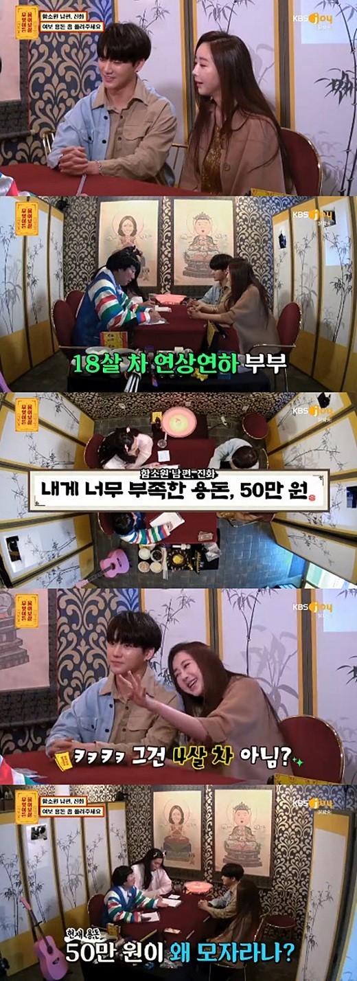이수근은 함소원 남편인 진화를 보고 "아이돌 얼굴이네"라고 언급했다. 진화는 "한달 용돈이 50만원이여서 부족하다"고 전했다. 이를 들은 함소원은 "지난달에 70만원 썼잖아"라고 말했다.