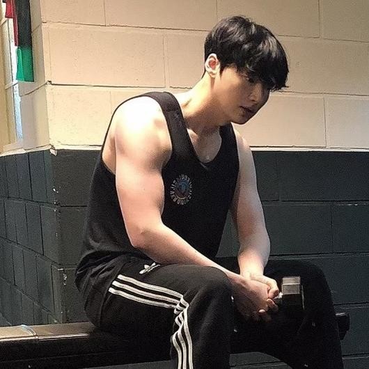트레이닝 복 사이로 드러난 안재현의 남다른 팔근육이 눈길을 끈다. 과거보다 훨씬 더 커진 몸이 안재현의 섹시미를 부각시킨다.