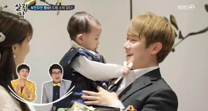 이날 잔치 말미 하이라이트인 돌잡이가 진행됐고, 짱이는 드럼스틱을 잡았다.