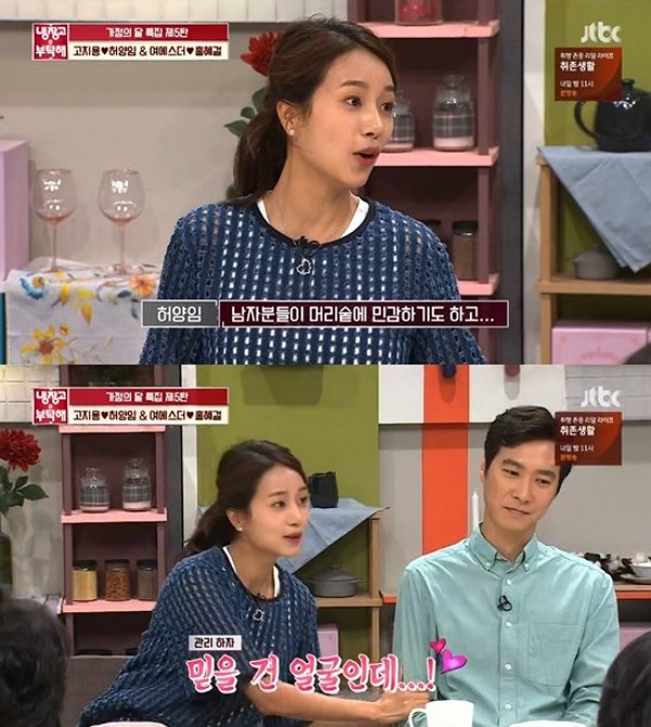 가정의학과 전문의 허양임은 이날 남편 고지용의 탈모를 걱정했다. 허양임은 "남편의 탈모가 진행되는 것 같아 탈모약을 먹자고 했다. 남자분들이 머리 숱에 민감하지 않냐. 믿을 건 얼굴 뿐인데"라고 말했다.