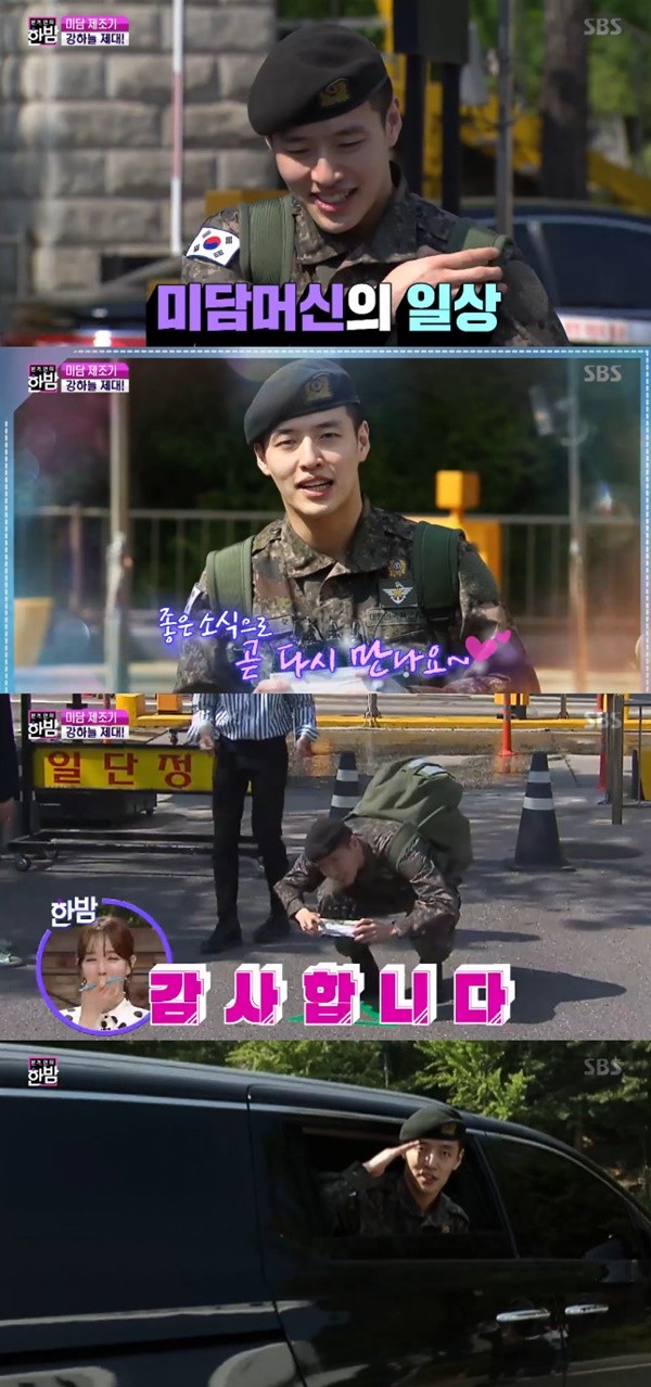 이날 방송에서 '한밤'측은 강하늘의 전역식을 찾아 소감을 물었다.