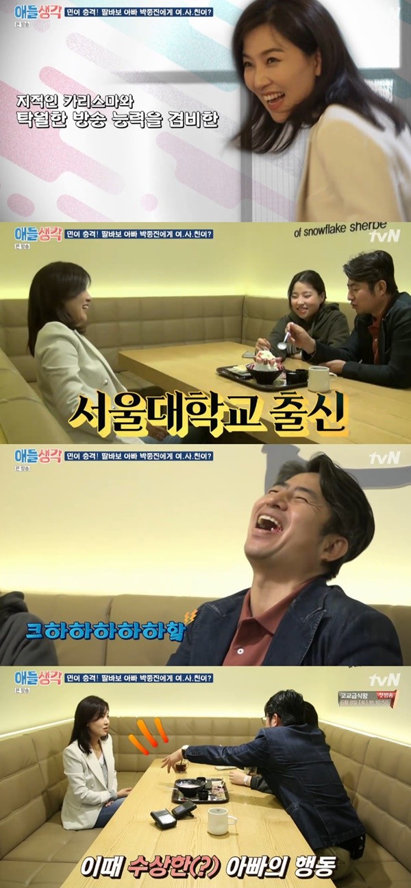 임윤선은 "아빠가 정말 성격이 좋으시다. 사람들한테 워낙 잘하신다"며 "과거에도 여자 패널들이 나오면 유독 친절했다"고 장난스럽게 말했다. 이에 박민은 박종진을 노려보며 "집에서도 엄마한테 좀 다정하게 하고 배려도해라"라고 말했다.
