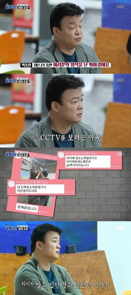 이후 백종원은 "철수하고 나서부터 CCTV를 보고 포기할건 포기. 철수하고 나서부터가 중요하다. 철수하고도 똑같이 행동하는지" 보고자 했다.
