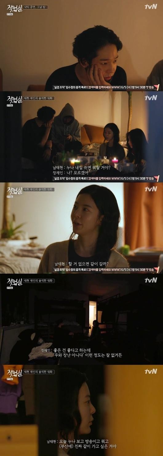 29일 방송된 tvN '작업실'에서 최낙타 공연 후 깊은 밤, 모두 모여 이야기를 나눴다. 남태현은 장재인에게 "내일 쉬면 뭐 할 거냐"고 물었다. 그러면서 "나 내일 부산 가면 공연하고 하루 있다 올까 하는데 할 거 없으면 같이 갈까?"라고 제안했다.
