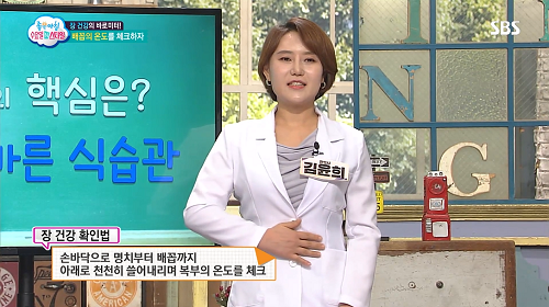 특히 서구화된 식생활과 야식 문화로 염증성 장 질환 환자가 늘어나기도 해 자신의 장 상태를 잘 살피는 것이 좋은데, 명치 쪽부터 손으로 천천히 쓸어내리다 배꼽에서 찬 기운이 느껴지면 '신궐혈'이 차다는 의미로 장 기능과 면역력이 저하돼 있을 수 있다. 이 진단법은 실제로 한의원에서도 사용하는 방법으로, 윗배가 따뜻한 밥공기 온도일 때 배꼽이 식은 밥공기 정도라면 복부냉증을 의심할 수 있다.