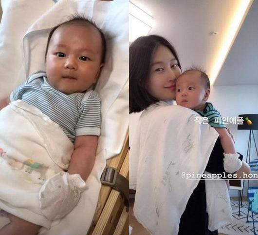 공개된 사진 속 이현이는 둘째 아들을 안고 있는 모습이다. 이현이의 큰 무쌍 눈과 오똑한 코를 쏙 빼닮은 귀여운 비주얼이 눈길을 끈다.