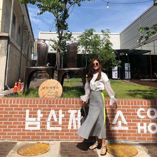 공개된 사진 속 김성은은 선글라스를 낀 채 카메라를 바라보고 있다. 김성은은 롱스커트를 입고 8등신 비율을 뽐내고 있다.