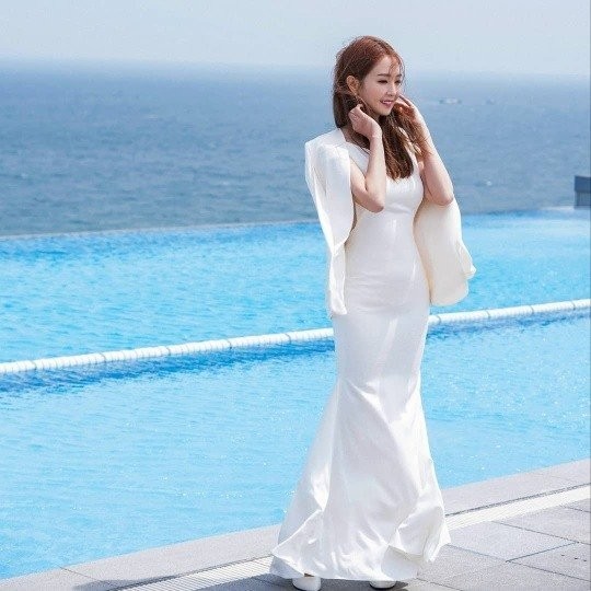 공개된 사진 속 오정연은 해변가에 써서 포즈를 취하는 모습. 오정연은 하얀 드레스를 입고 S라인을 뽐내고 있어 시선을 사로잡았다.