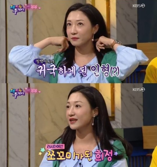 장희정은 "귀국할 때 공항에서 엄마에게 인사를 했는데, 내가 살이 너무 쪄서 엄마가 못 알아봤다. '난 인형인데 왜 못 알아보지?' 했다"고 덧붙여 웃음을 안겼다.