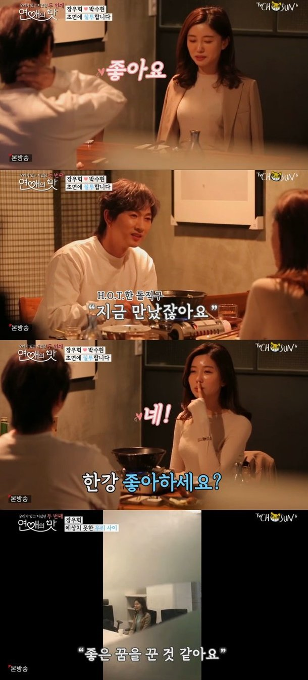 이날 장우혁과 박수현은 밤 10시에 늦게 만난 탓에 영화만 봤음에도 12시가 지난 시간이 됐다. 두 사람의 심야데이트에 패널들은 “1박2일을 보내네”라고 했다.