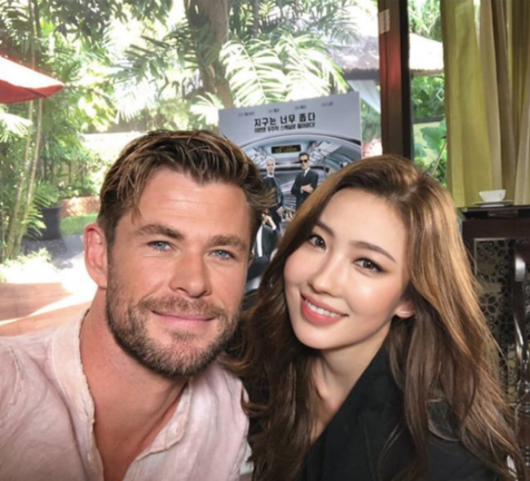 이사배는 크리스 헴스워스와 함께 찍은 사진을 공개하며 팬심을 드러내 눈길을 끌고 있다.