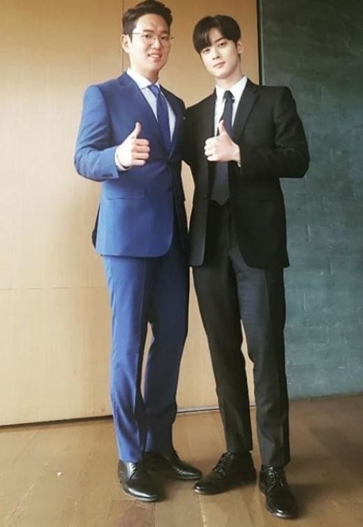 이와 함께 공개된 사진 속 장성규는 차은우와 만난 모습이다. 장성규, 차은우는 단정한 슈트를 갖춰 입고 '엄지 척' 포즈를 취해 훈훈함을 자아낸다.