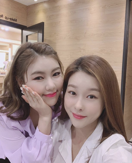 사진에서 현영과 송가인은 곱게 메이크업을 하고서 한껏 예쁜 표정을 짓고 있다. 두 사람 다 물오른 미모가 돋보인다.