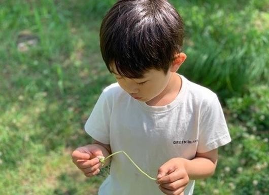 공개된 사진 속에는 유지태, 김효진 부부의 첫째 아들의 모습이 담겨 있다. 토끼풀을 만지고 있어 고개를 숙이고 있지만 유지태, 김효진 부부를 닮아 우월한 유전자가 눈길을 끈다.