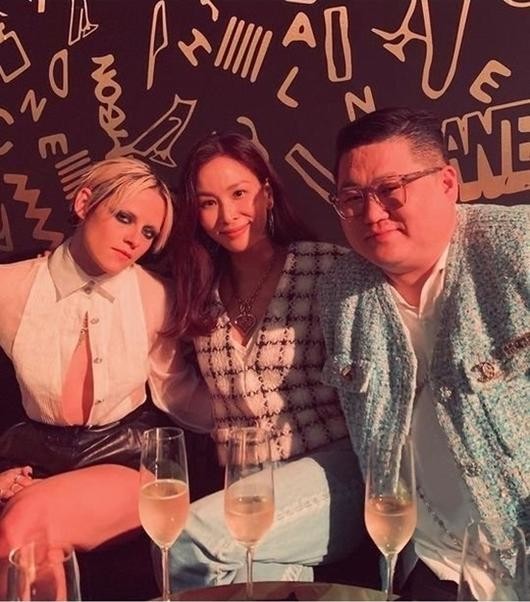 29일 고소영은 자신의 인스타그램을 통해 "샤넬 인 서울. 너무 좋아하는 크리스틴 스튜어트. 반가운 형식&윤기"라는 글과 함께 두 장의 사진을 올렸다.