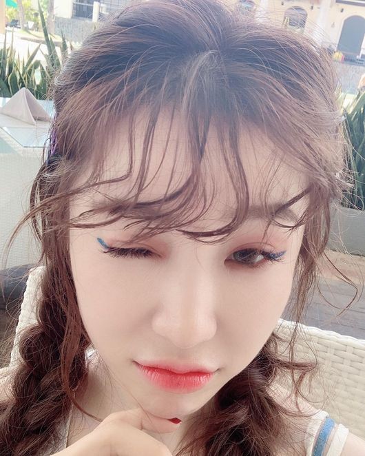 전효성은 파란색 아이라이너로 눈 꼬리를 그려, 여름 메이크업을 완성한 모습이다. 전효성은 다소 난해할 수 있는 화장법도 깜찍하게 소화해 눈길을 끈다.