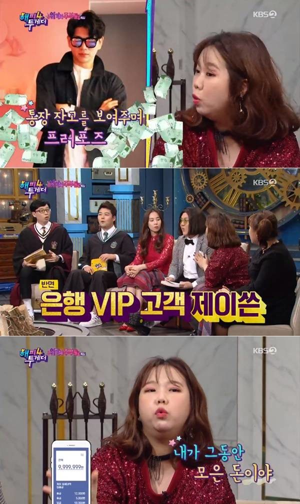 이날 홍현희는 경제권에 관해 얘기하며 "저는 후배들에게 돈을 많이 흥청망청 쓰는 편인데, 제이쓴 씨가 은행 VIP 고객이더라"라고 밝혔다.