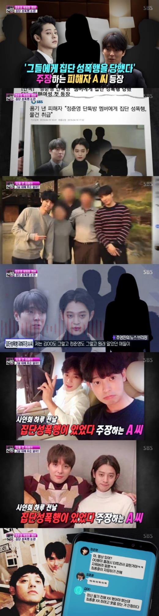 A씨는 SBS '주영진의 뉴스브리핑'과 인터뷰에서 "김OO도 그랬고 정준영도 그랬고 원래 알았던 애들이다. 여자 저 혼자인데 날 어떻게 할 거라고는 생각을 아예 못했다"고 말했다. 의심없이 술자리를 가졌다는 A씨는 사인회 하루 전날 집단성폭행이 있었다고 주장했다. A씨는 "팬사인회 하러 애들이랑 내려가는데 얼굴 보자고 했다. 술 더 마시고 놀자고 했다. 원래 알던 사이고 친하니까 별 생각없이 간거다"고 덧붙였다.