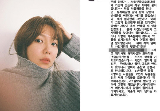 이어 "그러나 이렇게 가족들에게 찾아가 악플을 남기는 것은 제가 어떻게 둘러댈 말이 없다. 위에 저희 엄마의 사업계정에 댓글 남기신 분, 그리고 제 기사에 허위사실과 모욕적인 댓글 남기신 분들. 스스로 삭제할 기회를 드리겠다"며 경고했다.