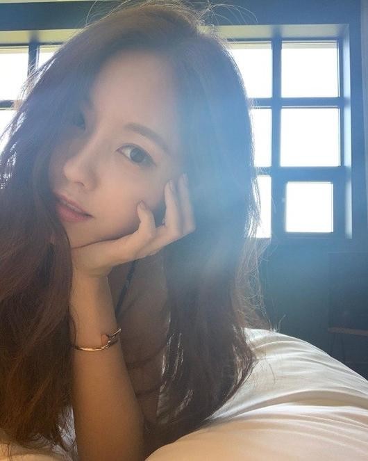 공개된 사진 속 효민은 침대 위에서 셀카를 촬영하는 모습이다.