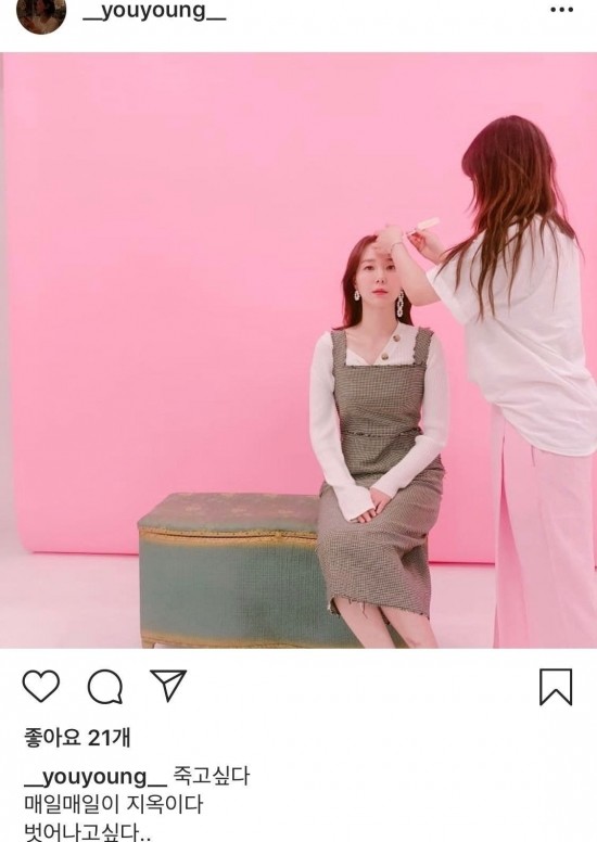 배우 이유영은 지난 5월 31일 SNS에 “죽고 싶다. 매일매일이 지옥이다”라며 “벗어나고 싶다”고 글을 올렸다 곧장 삭제했다.