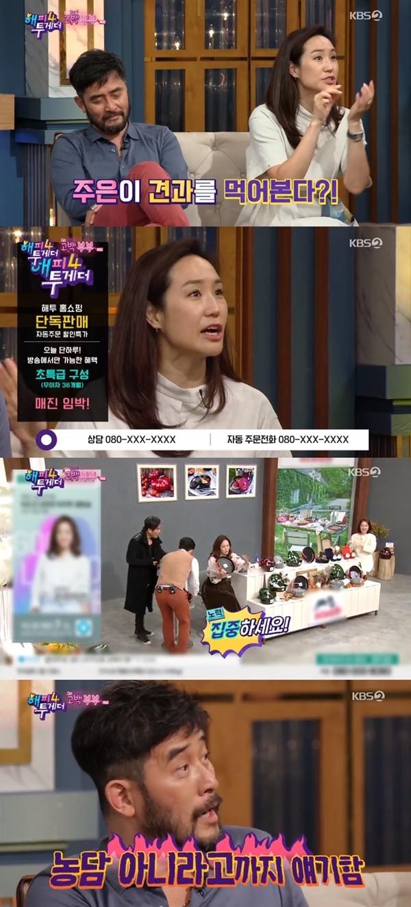 이날 홈쇼핑 쇼호스트로 활동 중인 강주은은 "남편이 프로그램 모니터를 열심히 해주고 응원을 해준다. 너무 고맙다. 어느 날 보니까 제가 방송을 하고 집에 왔는데 제가 팔던 꿀을 저 앞에서 먹고 있더라. '주은이가 먹는 게 너무 맛있어 보여서 나도 같이 먹고 싶었다더라"고 말했다.